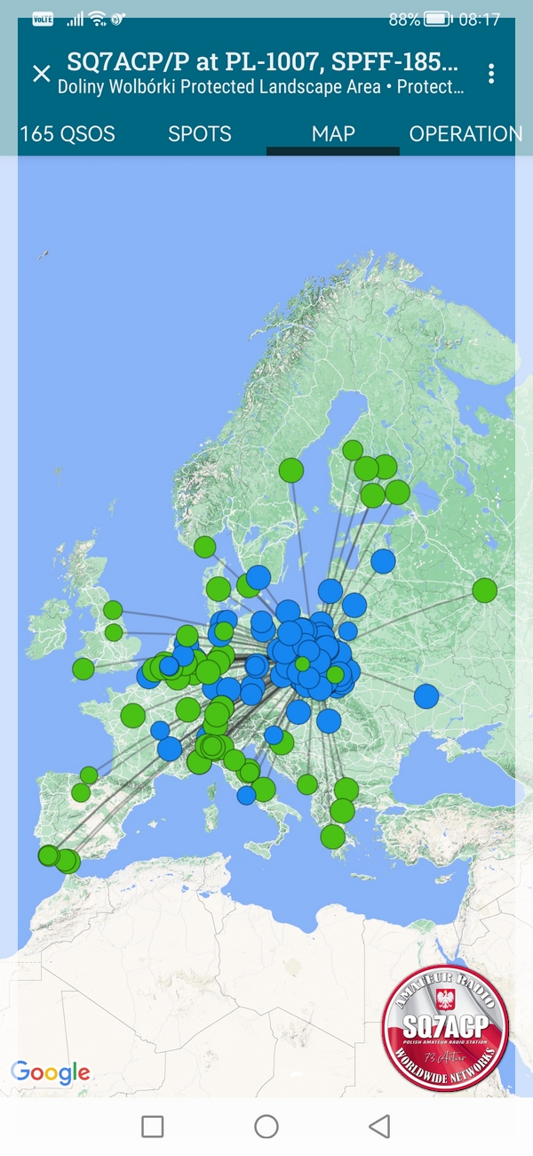 W logu siadło 165 QSO, pierwsza setka standardowo w ciągu =/- 45 min. Na aktywację załapały się 26 kraje DXCC Polska, Niemcy, Włochy, Belgia, Francja, Finlandia, Hiszpania, Szwecja,Anglia, Szwajcaria, Litwa, Czechy, Holandia, Portugalia, Grecja, Ukraina, Słowacja, Węgry, Słowenia, Rosja, Bułgaria, Dania, Czarnogóra, Chorwacja oraz Litwa 🙂