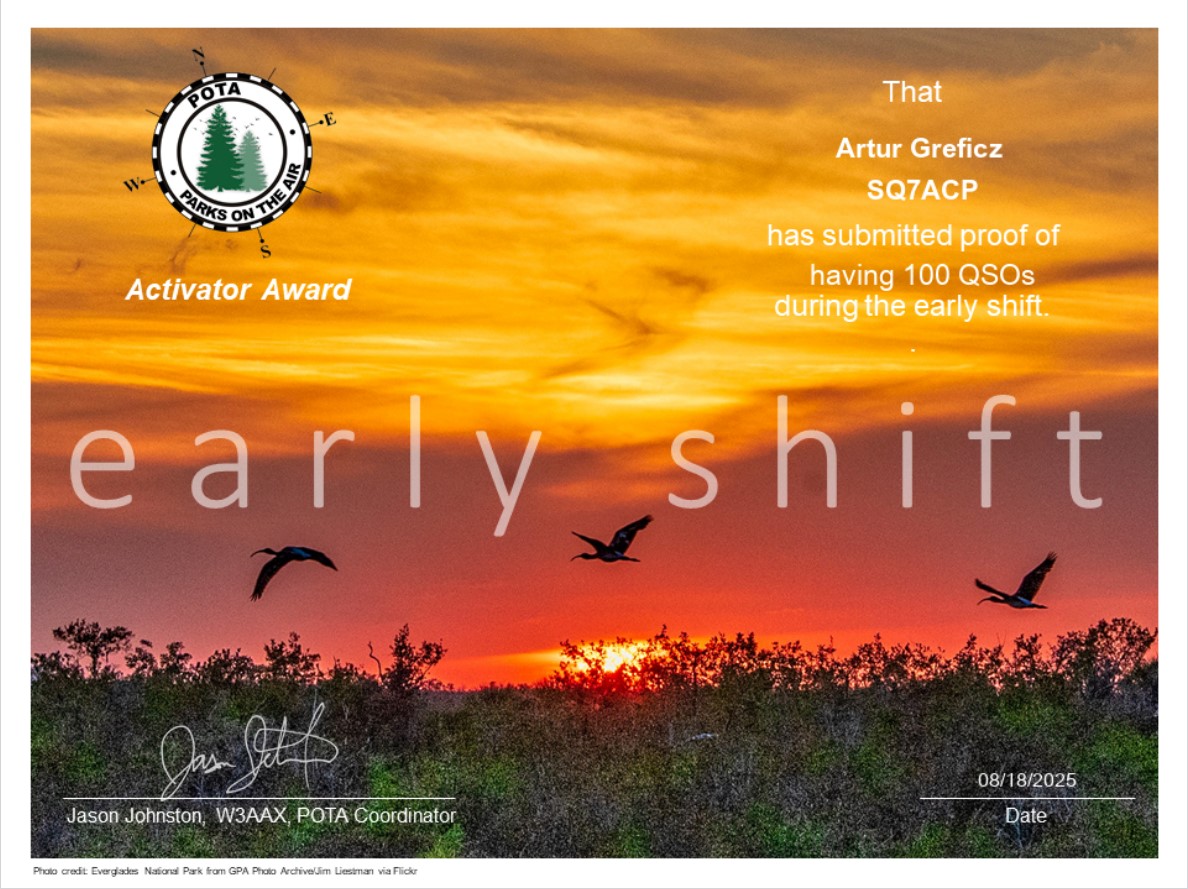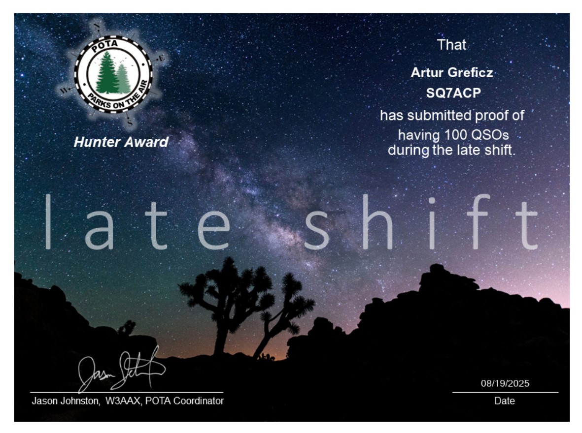Kolejna porcja 55-ciu świezych dyplomów. Najnowsze z serii to: POTA, SPFF, ERC, FT8DMC, ABG oraz INEE, oto niektóre z nich.
