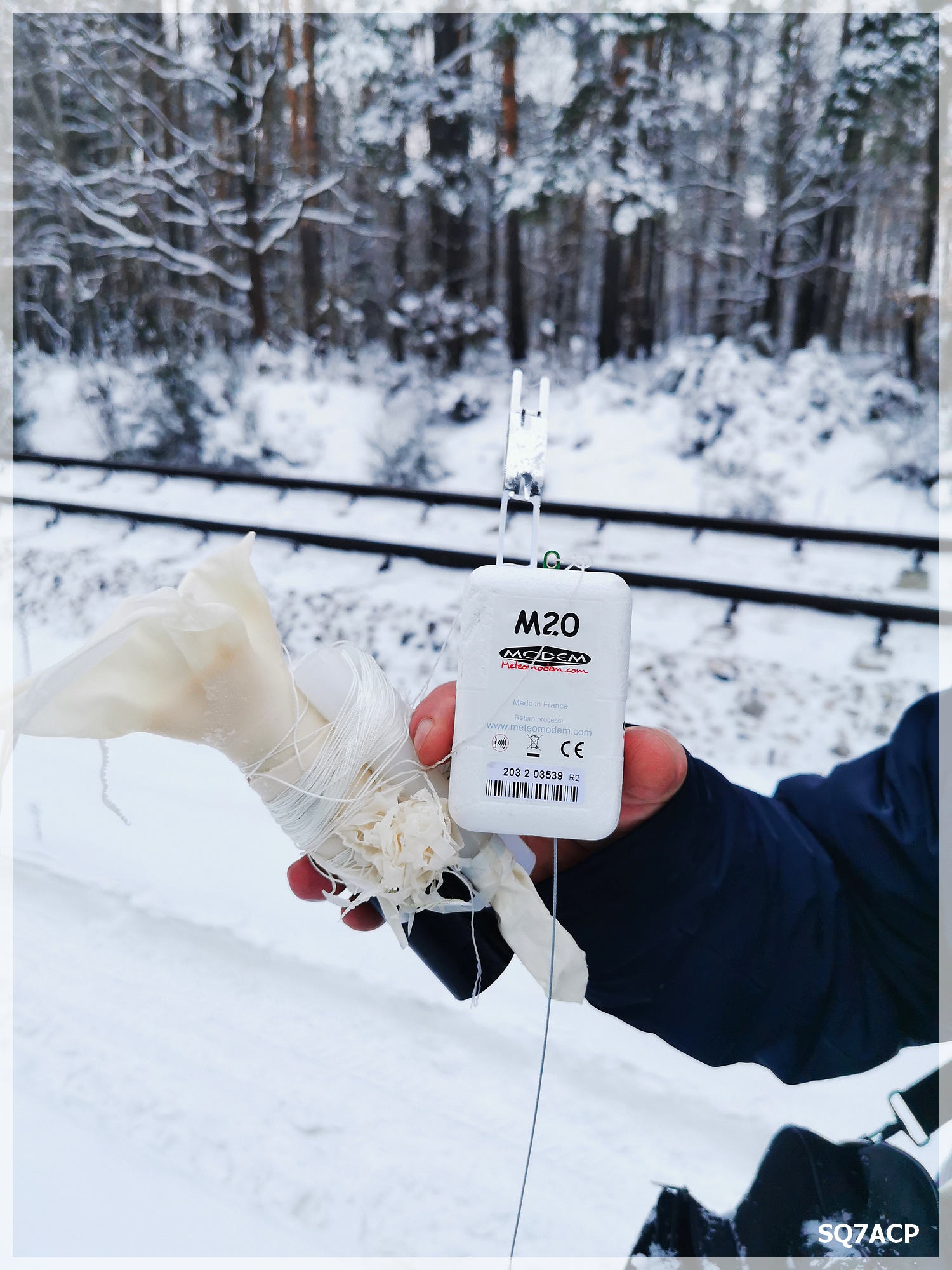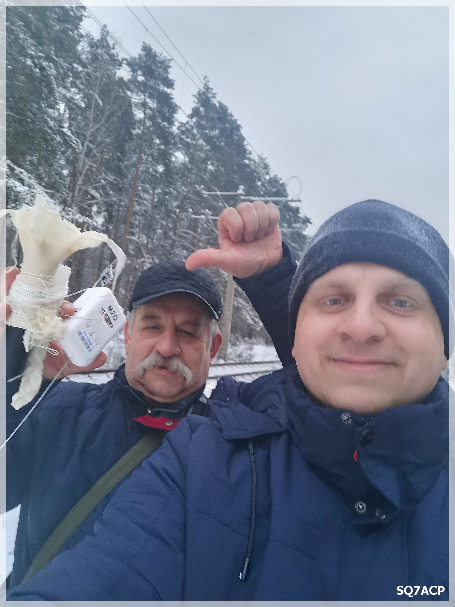 No trudno się mówi i żyje się dalej 🙂 W końcu jednak nadszedł ten dzień kiedy to sonda zamierzała lądować zaledwie 8km na zachód od miasta. Wyjechaliśmy więc trochę wcześniej i ustawiliśmy się po tamtej stronie miasta. Sonda leciała sobie ze średnią prędkością 107km/h  oraz maksymalną 257 km/h na wysokości 34446m. Maksymalna wysokość osiągnięta przez sondę to 35309m 🙂 to całkiem niezły wynik 🙂 Średnie wznoszenie miała w okolicach 5.5 m/s w a opadanie kształtowało się na średnim poziomie w okolicach 25 m/s. Oczywiście im bliżej ziemi tym opadanie maleje, w przypadku M20 nawet do 8 m/s. Balon sondy pękł tuż przed Piotrkowem Trybunalskim, no to zaczęło się wyczekiwanie kiedy i gdzie upadnie. Długi czas predykt ciągle wskazywał okolice Wiaderna tuż przed miastem, natomiast liczony samodzielnie rano przed startem pokazywał mi okolice Ciebłowic Dużych  / Wąwału czyli znowu po przeciwnej stronie miasta od wschodu.  Tymczasem sonda sobie spada i dostała cugu 🙂 Już wiemy że nie spadnie na Wiadernie, pytanie gdzie bo jeszcze kawałek jest nad miastem. Ok ruszamy więc w kierunku wschodnim , boczkiem, boczkiem bo to zaraz godziny szczytu we wiosce 😛 Drogi zasypane, ledwo co odśnieżone, więc o szybkim przemieszczaniu się nie ma mowy. Powolutku, pomalutku kulamy się przez miasto. Szybki wgląd na mapy i do aplikacji mySondyGo , RDZ-ta i softu Krzysia SP9SKP i Tomka SQ6QV i okazuje się że jednak dobrze wyliczyłem rano predykt 🙂 Spadnie po wschodniej stronie 🙂 Kierunek Ciebłowice Duże już obrany, sonda spadła ostatnia ramka odebrana z wysokości 250m w trakcie jazdy z anteny na klapie bagażnika. Tymczasem już widać na drodze gdzie pług jednak nie dojeżdża. Totalna szklanka i ślisko na maksa, więc jazda z prędkością większą niż 40km/h nie wchodzi w grę. Im dalej od miasta a bliżej celu tym trudniej jechać, na końcu wioski już w ogóle same atrakcje zjazd z górki po lodzie 🙂