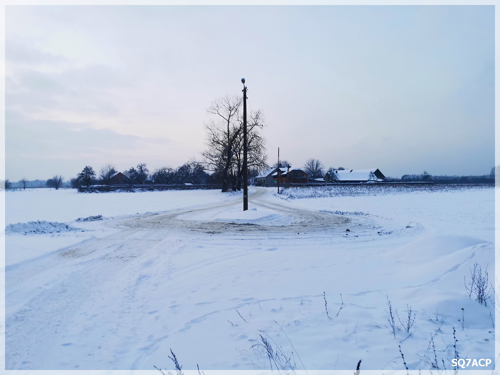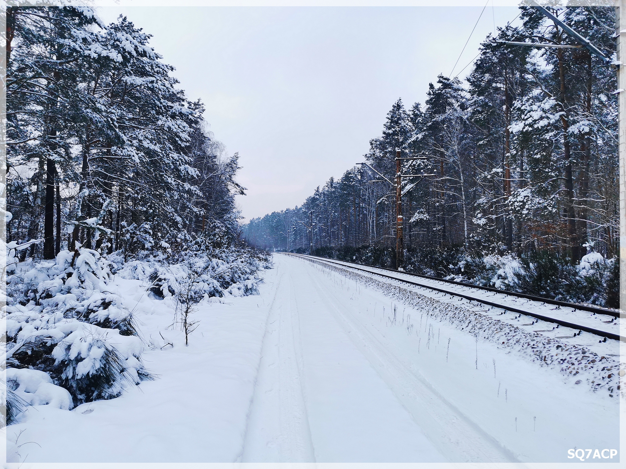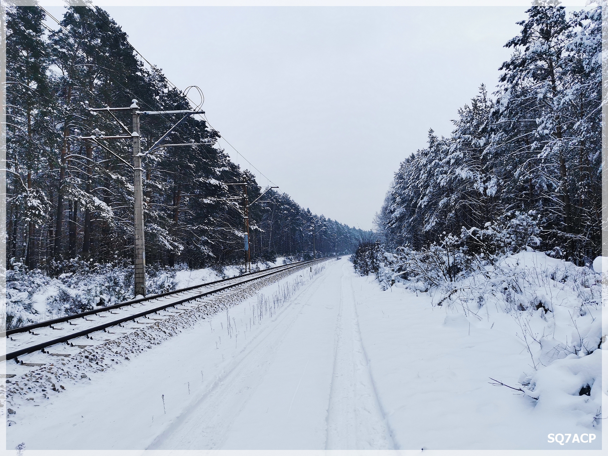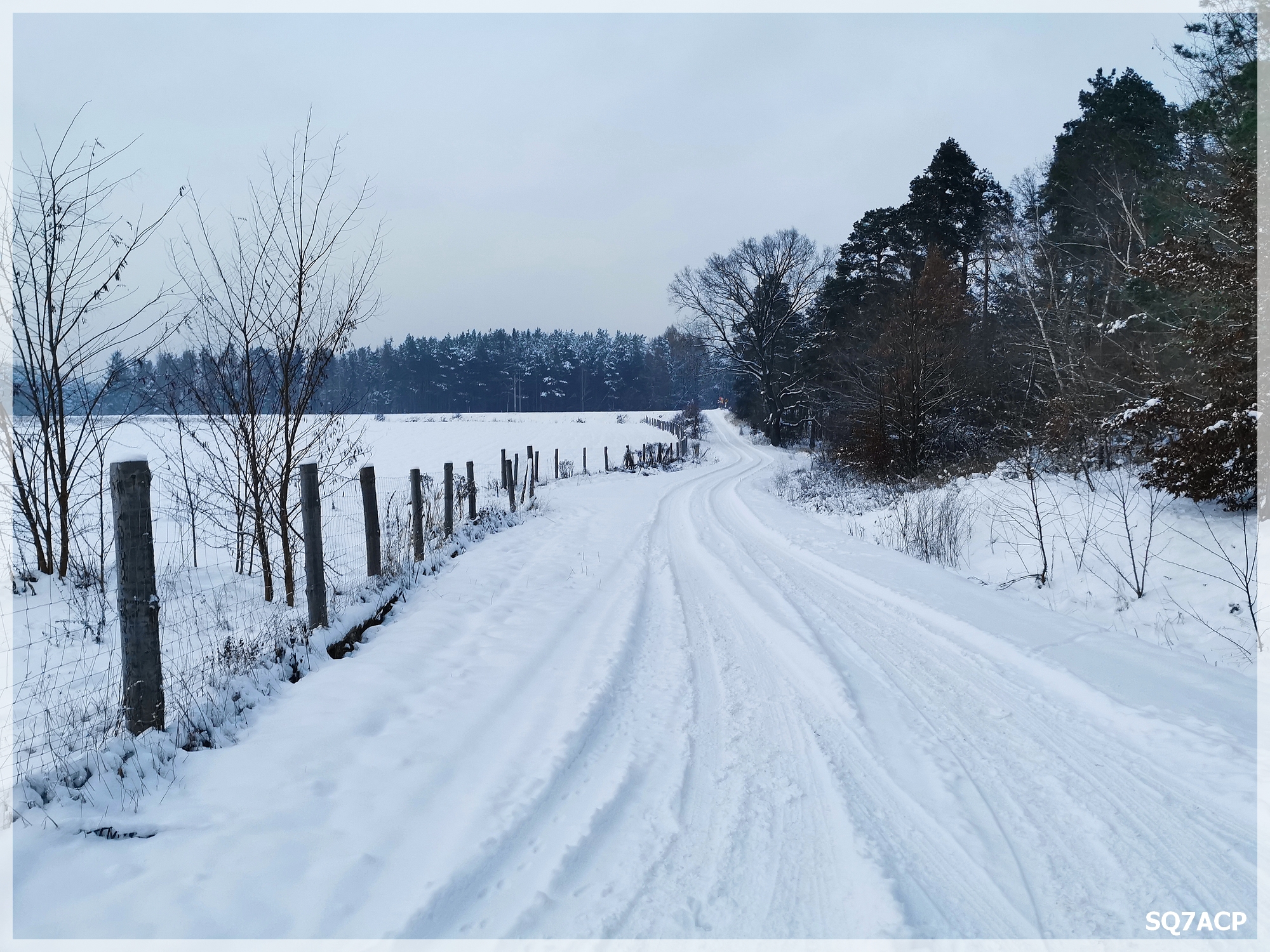 Widoki są obłędne, piękna polska zima, szkoda że takie widoki staja się powoli rzadkością 🙁 Pogoda dopisuje jest ciepło, przyjemnie i o dziwo prawie nie ślisko. Niemniej przyspieszamy troszkę kroku bo za godzinę będzie  robić się szybko ciemno. Przy przejeździe kolejowym rozdzieliliśmy się. Tata poszedł po stronie sondy gorszą drogą, ja tą lepszą.