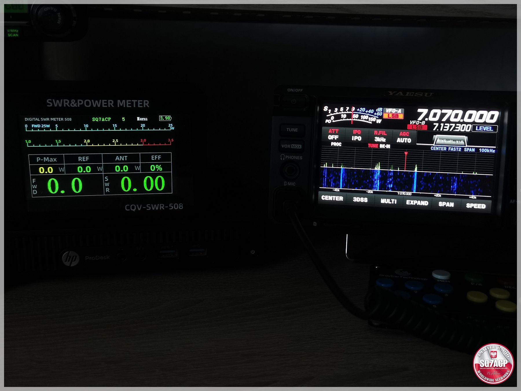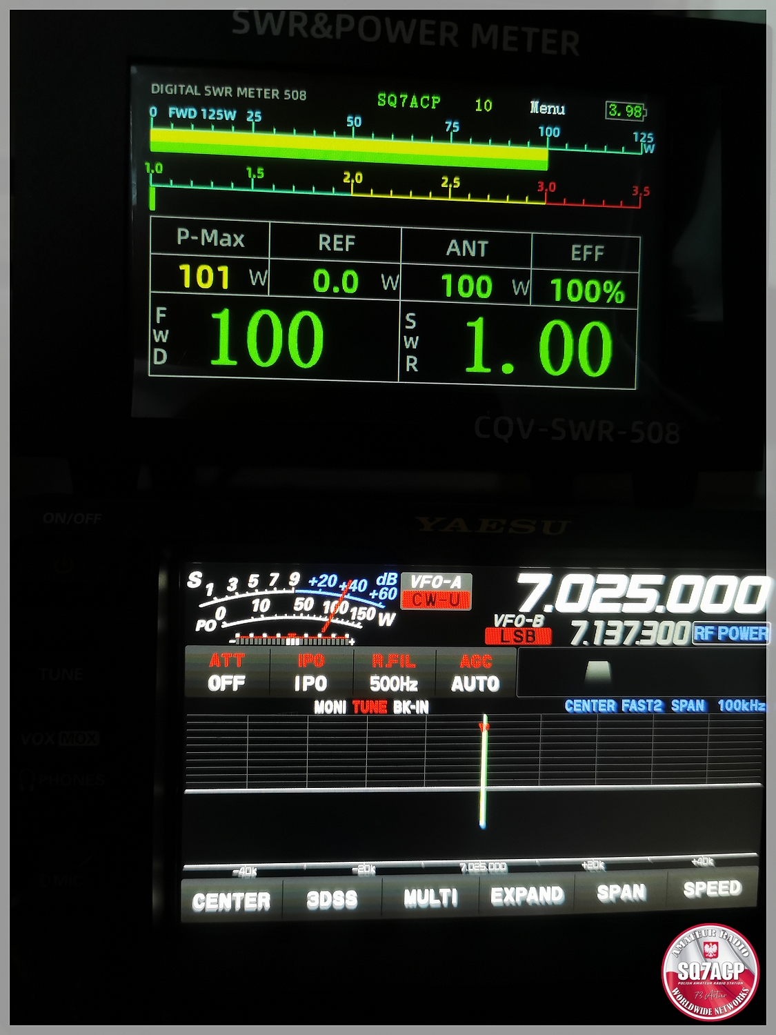 SWR, również pokazywany w sposób dwojaki, za pomocą poziomego bargrafu oraz odczytu w postaci liczbowej.