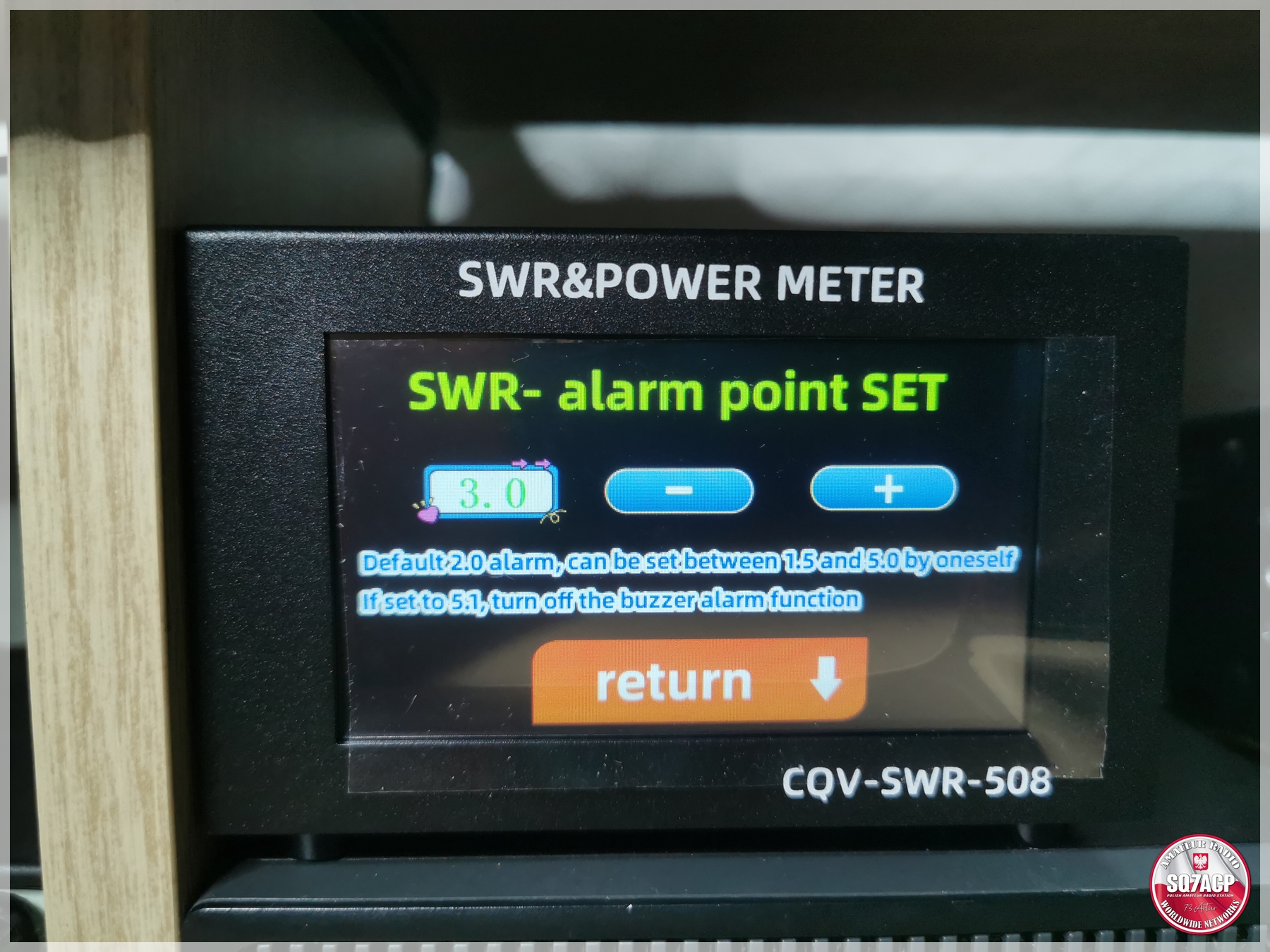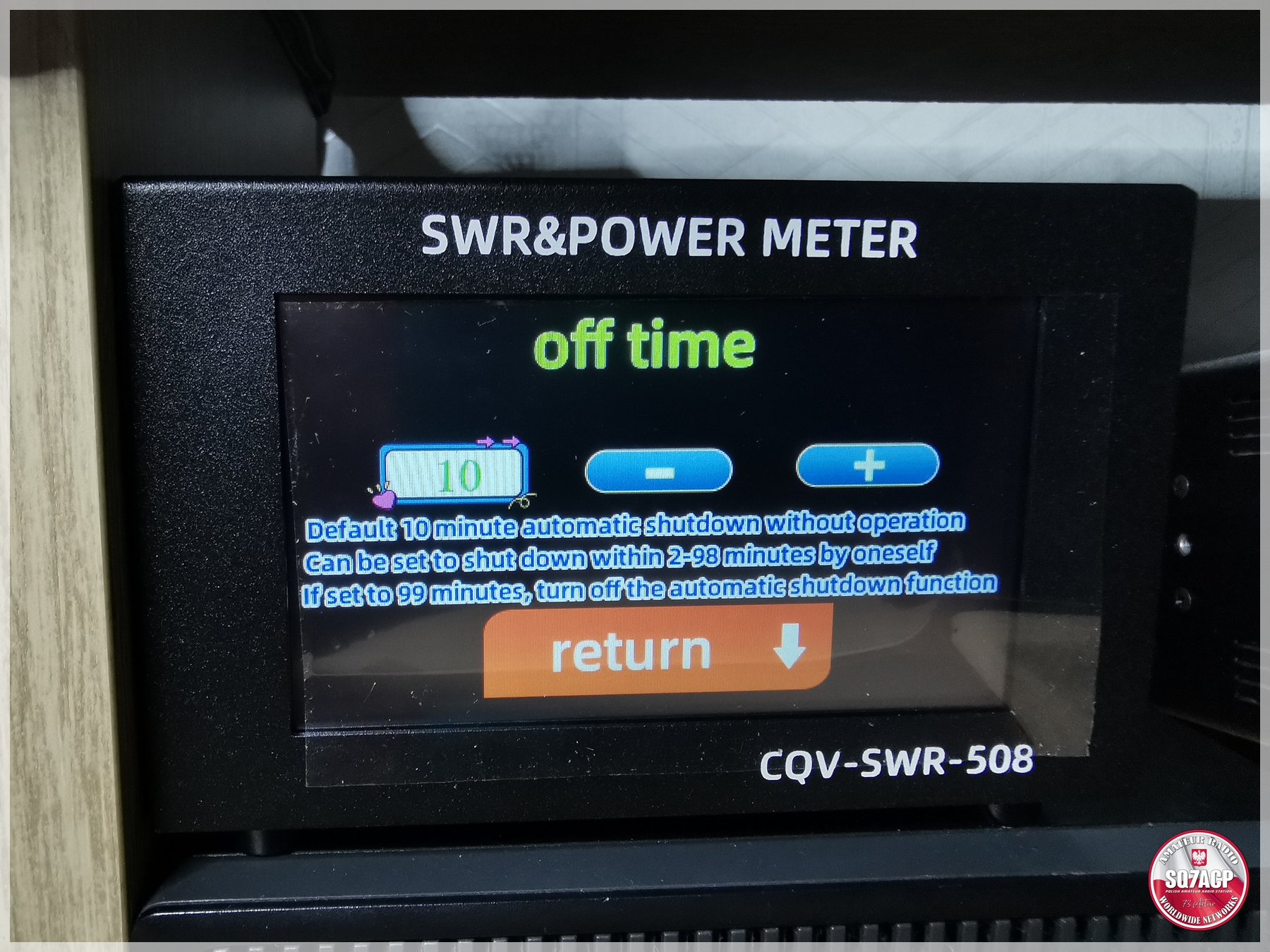 Reflektometr posiada ciekawą funkcję. Mianowicie, kiedy zegar jest ustawiony jest na 10 min, wyłączy się automatycznie by oszczędzać baterię, ale ……  No właśnie to ale jest najciekawsze, kiedy tylko podamy nośną w radio reflektometr automatycznie się wybudzi 🙂 Reflektometr ma też trzy zakresy pomiaru, które sam przełącza 25W, 125W oraz 200W.  Po przekroczeniu ustawionego alarmu w urządzeniu zacznie ono piszczeć a SWR zacznie migać na czerwono jak na  filmie.