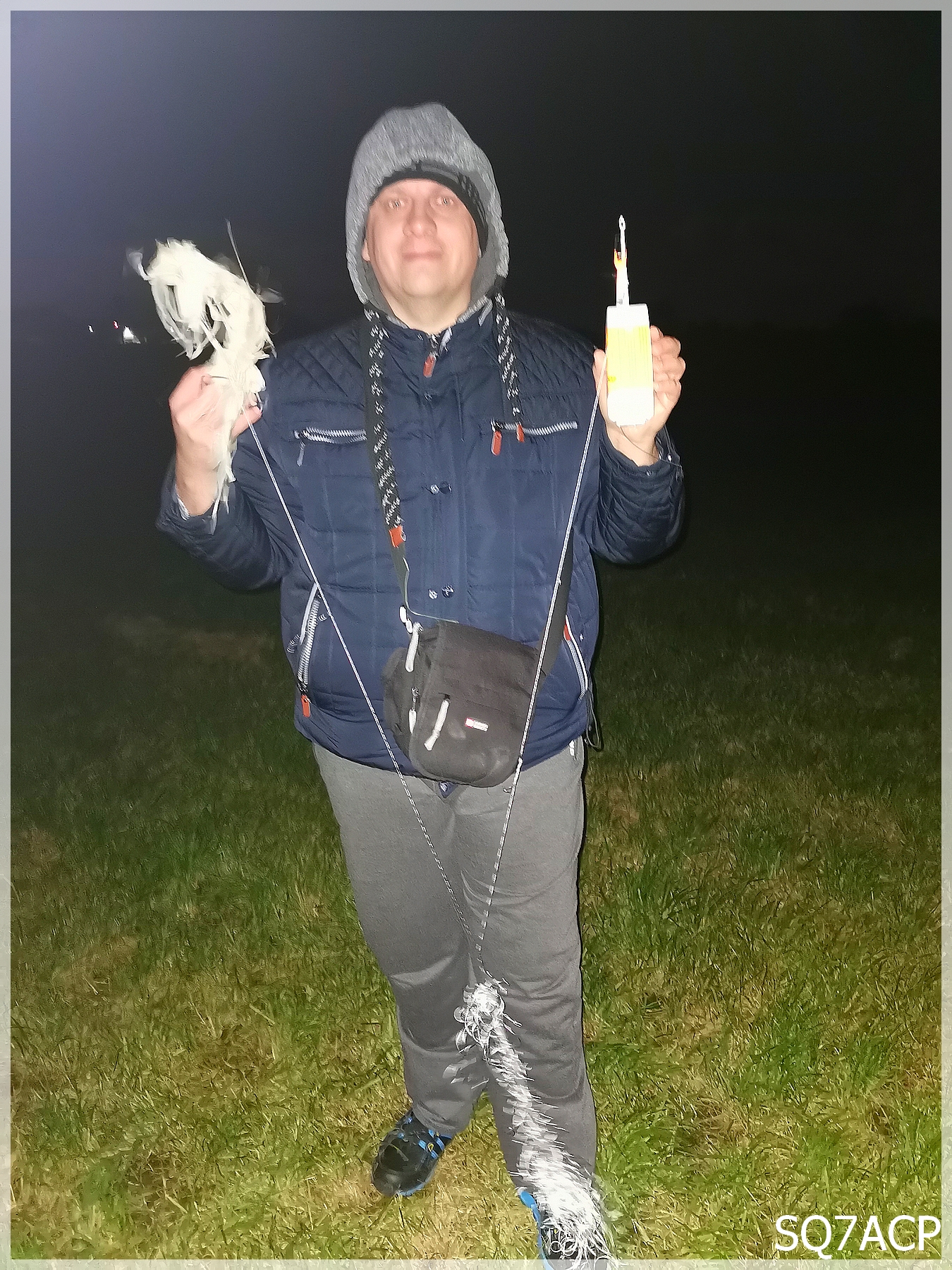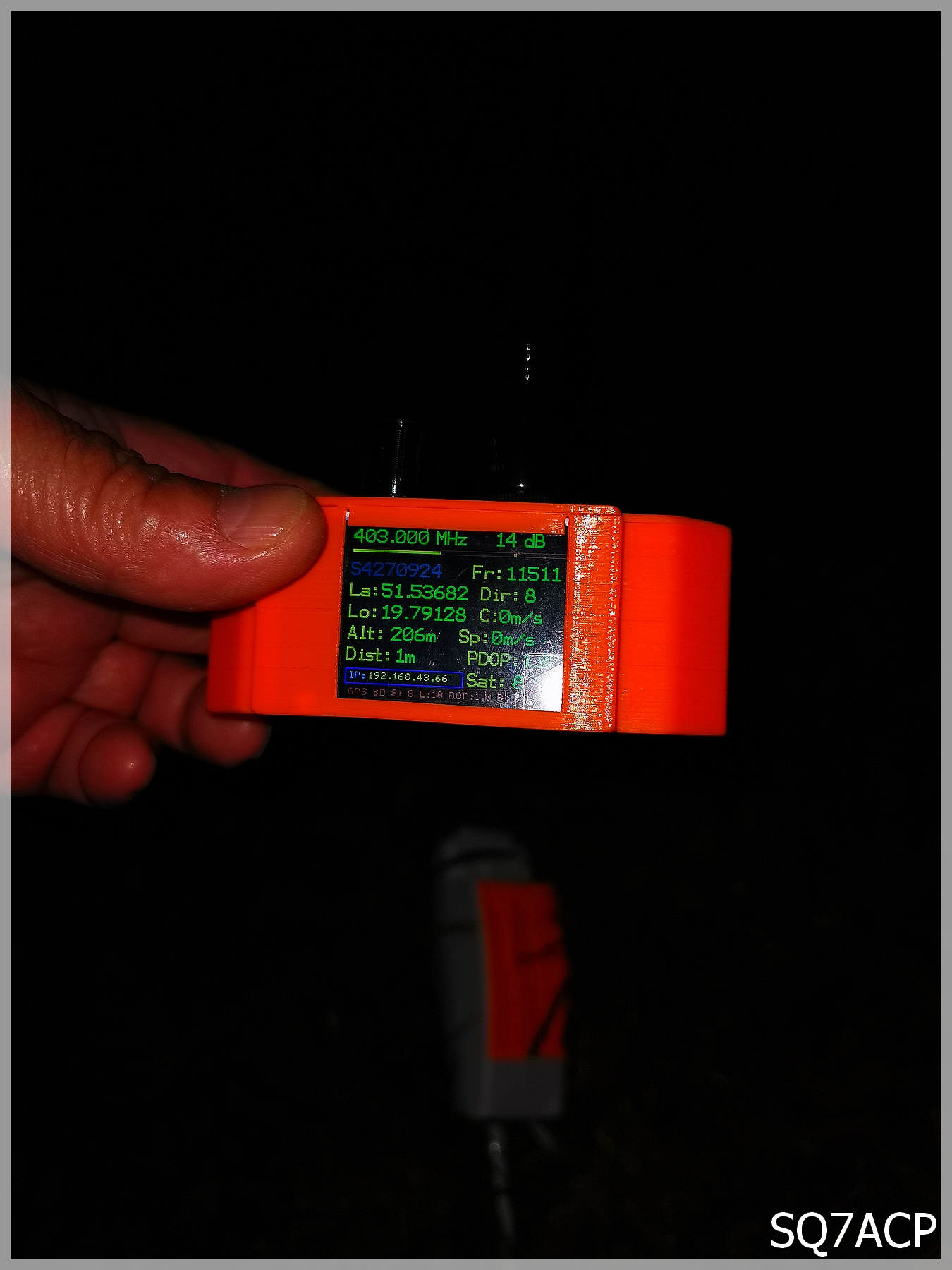 TTGO niezawodnie zdekodowało pozycję, zostawiamy auto na polnej drodze tuż obok kapliczki i w dalszą drogę udajemy się pieszo. Niestety zdjęcie zrobiłem dopiero przy radiosondzie, ponieważ przenikliwe zimno tak szybko zmroziło nam ręce że w ruch musiała pójść latarka czołowa, zwykłej ręcznej nie można było utrzymać.