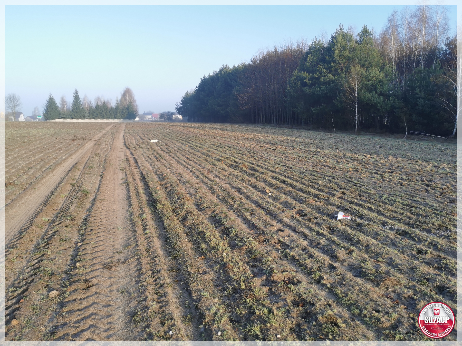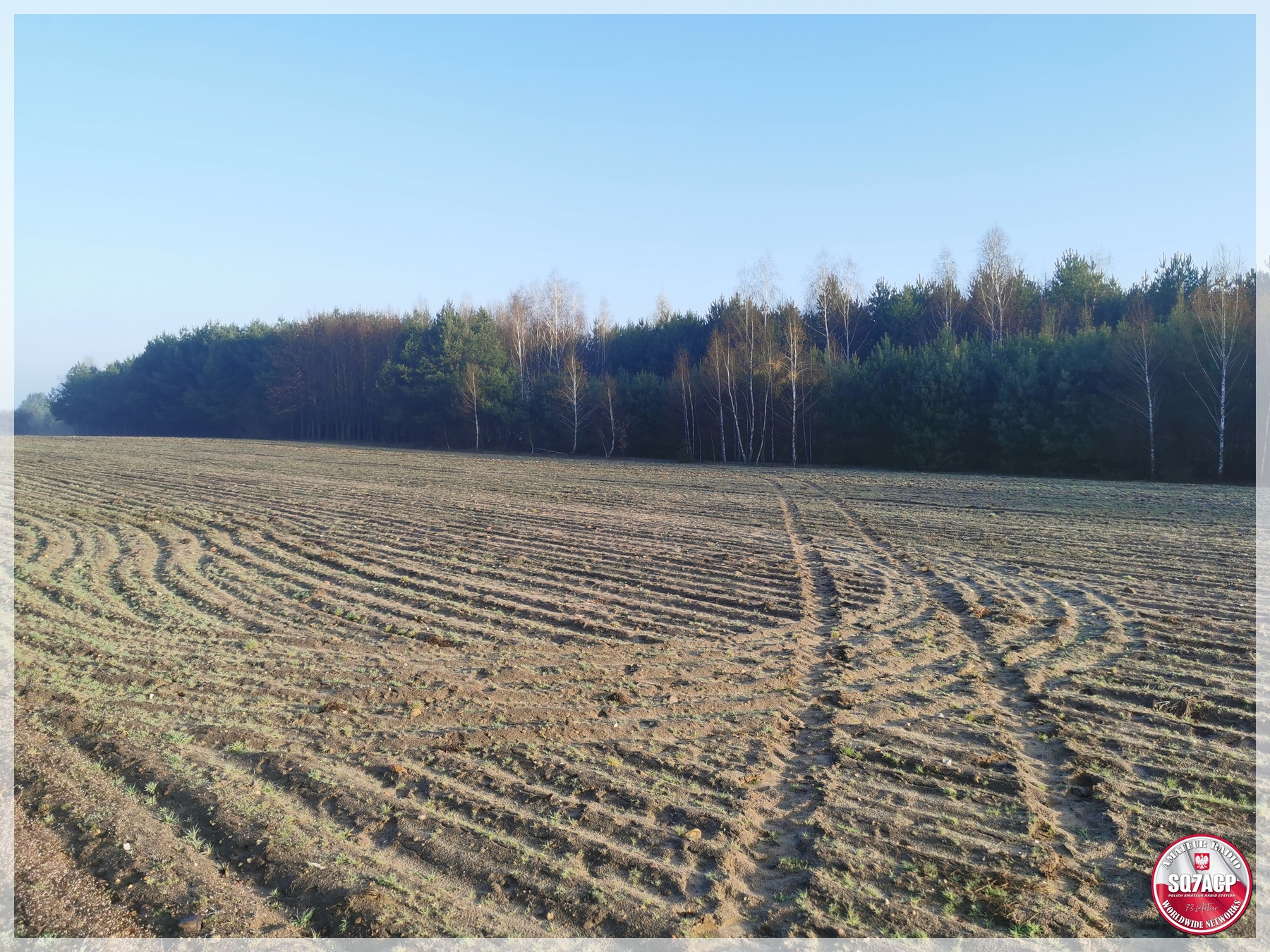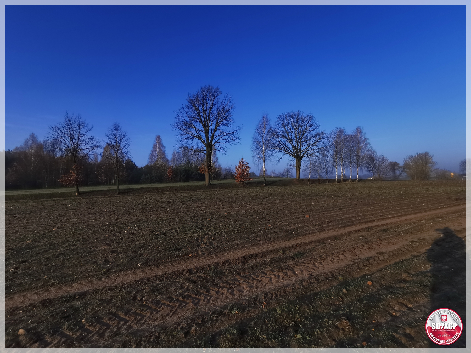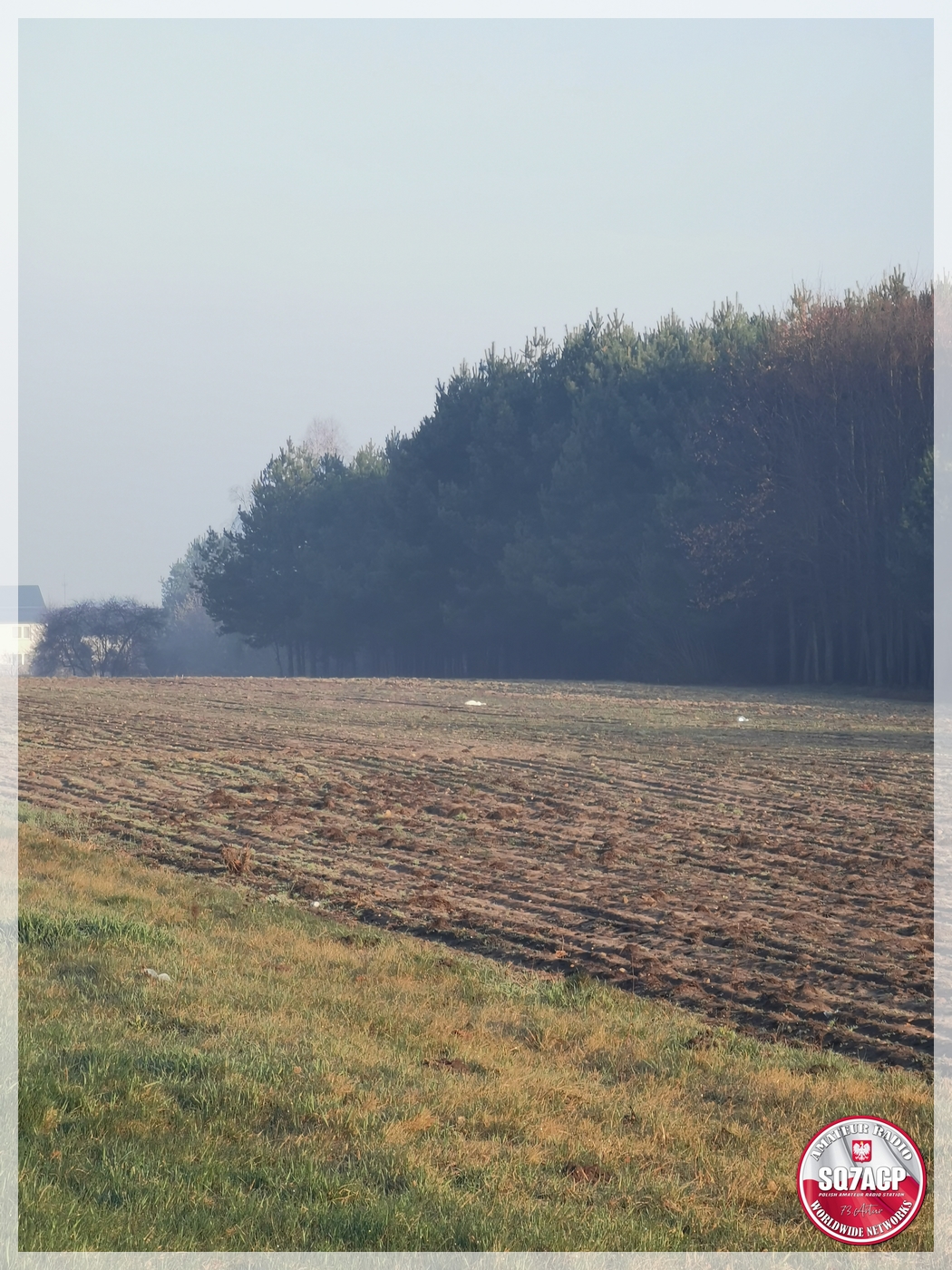 Sonda nadaje słychać pikanie w radio 🙂 Musiałem przejechać miejsce upadku radiosondy jakieś 100m z powodu głębokich rowów tuz przy drodze, nic to jest zjazd do lasku tu zostawiamy auto. Idziemy, sondę i balon widać już daleka, na polu są ślady traktora podążamy więc nimi by nic nie zadeptać rolnikowi.