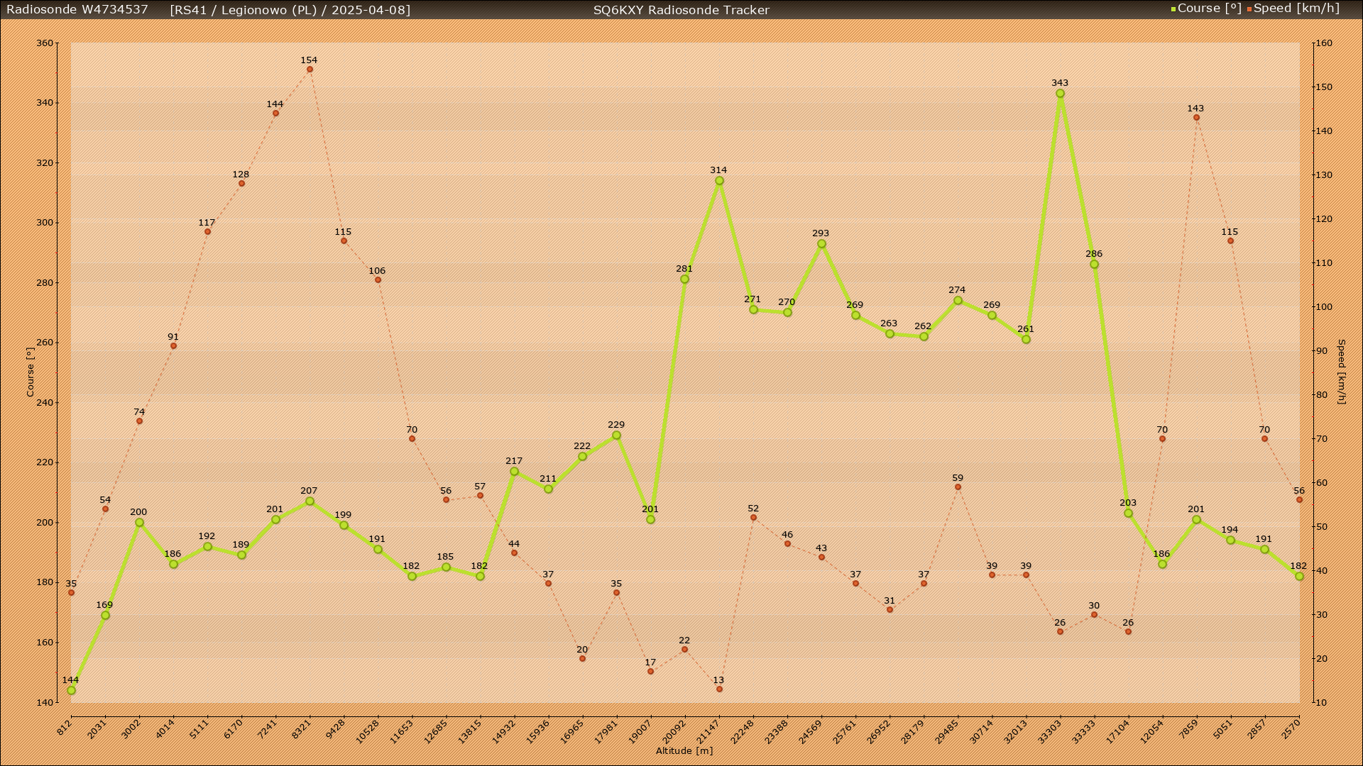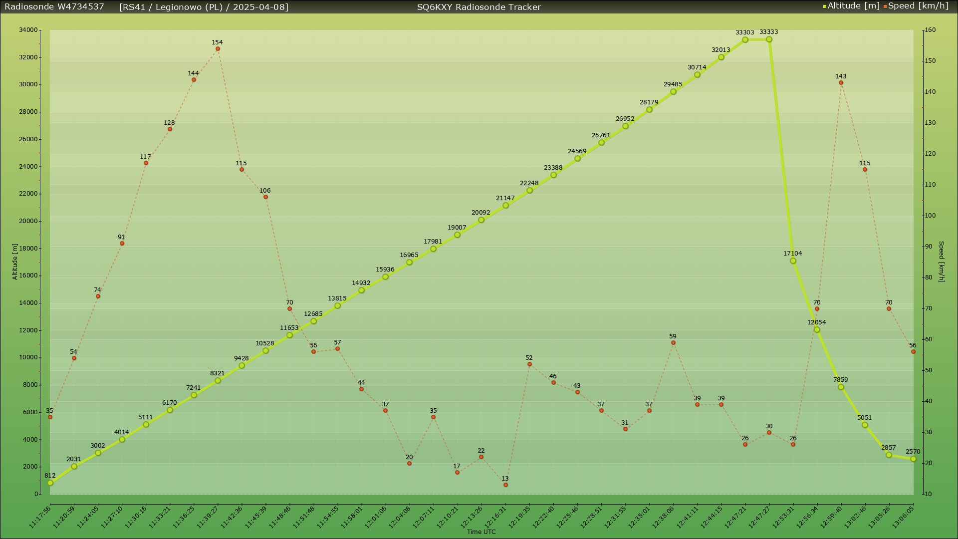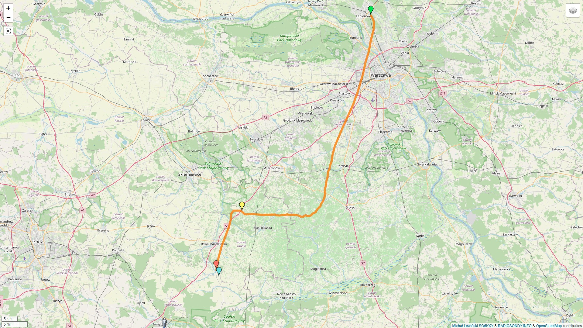 Ostatnia dobra passa dalej się utrzymuje, chodź nocne radiosondy robią mnie dosłownie i w przenośni „w balona” hahaha 🙂 Zamiast spadać pod dom to latają nie wiadomo gdzie hihi 🙂 Tym razem lot zapowiada się w okolice Rawy Mazowieckiej / Chociwia. Sondaż po zmianie czasu na letni standardowo rozpoczyna się w Legionowie około 13:15 czasu lokalnego, wtedy też wzbija się powietrze balon 🙂 Leci sobie i leci osiągając maksymalną wysokość 33333m nad ziemią, po czym pęka. Ale co to się dzieje ? Balon zamiast lecieć zgodnie z predykcją na południe zaczyna odbijać na północ 🙂 Ok, dziwne to no ale cóż, predykcje swoje – życie swoje 🙂 Sonda zaczyna po dłuższej chwili wybierać kierunek Chociw, swoją drogą w tej miejscowości znajduje się pas startowy zespolony z jezdnią 🙂 Wyruszamy z domu kiedy sonda ma 5km do ziemi, przed nami około 30km drogi, na spokojnie, pogoda słoneczna, lecz bardzo wietrzna. Trzeba się delektować widokami zza okna samochód, wszystko pięknie budzi się do życia, zieleni, bieli 🙂 w ogródkach pod domami już widać żonkile i tulipany – cudna jest wiosna 🙂 1,3km od celu odzywa się na radio sonda 🙂